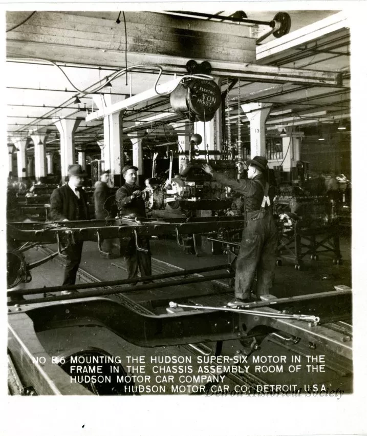Mounting The Hudson Super-Six Motor In The Frame In The Chassis Assembly Room Of The Hudson Motor Car Company, Hudson Motor Car Co, Detroit, USA