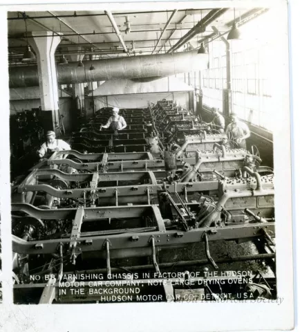 Varnishing Chassis In Factory Of The Hudson Motor Car Company; Note Large Drying Ovens In The Background, Hudson Motor Car Co, Detroit, USA