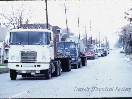 Request ImageColor photographic slide depicting a man driving a GMC Astro 95 labeled "Operated by Youngstown Cartage Co. Youngstown O."
