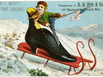 Keywords Content Type All TypesArchiveObjectPhoto Collection Name Object Name Description Title People Creator Catalog Number Advanced Search You searched for "Fyfe" 81 Results Found Title, Abstract 2013.042.554Archive Abstract of Title, Fyfe, Barbour and Warren's Subdivision of that Part of Private Claim 260 Lying between Horatio Street and Warren Avenue View Artifact Postcard 2011.036.126Archive R.H. Fyfe Company Building, Detroit, Mich. View Artifact Catalog, Sales 1947.135.127Archive R.H. Fyfe & Co., Manufacturers & Dealers in Fine Shoes, Illustrated Price Book, Fifth Edition View Artifact Print 2018.001.027Archive The Architectural Forum View Artifact Postcard 2012.020.220Archive R.H. Fyfe & Co., View of First Floor From Main Entrance. View Artifact Print, Photographic 2012.045.729Photo View Artifact Shoe 1974.035.001Object View Artifact Card, Trade 2014.114.048Archive View Artifact Print, Photographic 2014.002.611Photo Grand Circus Park - Gaja Kristnasko View Artifact Print, Photographic 2013.028.108Photo View Artifact Print, Photographic 2012.044.491Photo View Artifact Print, Photographic 2012.044.088Photo View Artifact Pagination Current page 1 Page 2 Page 3 Page 4 Page 5 Page 6 Page 7 Next page Plan Your Visit Get information about hours, location, admission, and more! Explore History Uncover stories of innovation, culture, and Detroit’s transformative journey.