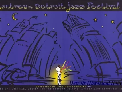 Keywords Content Type All TypesArchiveObjectPhoto Collection Name Object Name Description Title People Creator Catalog Number Advanced Search You searched for "Jazz Festival" 53 Results Found Poster, Advertisement 2007.010.032Archive 27th Annual Detroit International Jazz Festival - 2006 View Artifact Poster, Advertisement 2007.010.033Archive 25 Years of Jazz in the City - Silver Anniversary Edition - Detroit International Jazz Fesitval View Artifact Poster, Advertisement 2007.010.034Archive Twelfth Montreux Detroit Jazz Festival View Artifact Poster, Advertisement 2007.010.043Archive Ford Detroit International Jazz Festival 22 View Artifact Poster, Advertisement 2007.010.036Archive Montreux Detroit Jazz Festival 18 View Artifact Poster, Advertisement 2007.010.031Archive Ford Detroit International Jazz Festival View Artifact Poster, Advertisement 2007.010.037Archive 15th Annual Montreux-Detroit Jazz Festival View Artifact Poster, Advertisement 2007.010.044Archive Montreux Detroit Jazz Festival View Artifact Poster 2007.010.040Archive 20th Annual Montreux Detroit Jazz Festival View Artifact Poster, Advertisement 2007.010.038Archive Montreux Detroit Jazz Festival 16 View Artifact Poster, Advertisement 2007.010.035Archive 13th Annual Montreux Detroit Jazz Festival View Artifact Poster, Advertisement 2007.010.030Archive Detroit International Jazz Fest 26 View Artifact Pagination Current page 1 Page 2 Page 3 Page 4 Page 5 Next page Plan Your Visit Get information about hours, location, admission, and more! Explore History Uncover stories of innovation, culture, and Detroit’s transformative journey.