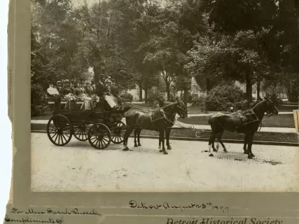 Keywords Content Type All TypesArchiveObjectPhoto Collection Name Object Name Description Title People Creator Catalog Number Advanced Search You searched for "Carriages" 377 Results Found Carriage 1948.145.028Object 1890's Enclosed Rockaway Carriage View Artifact Carriage 1953.204.001Object View Artifact Carriage 1951.213.001Object View Artifact Menu 2013.042.596Archive Auto Biography of the Horseless Carriage, Hotel Fort Shelby View Artifact Pitcher 1956.095.002Object View Artifact Print, Photographic 2014.110.004Photo View Artifact Print, Photographic 1974.007.004Photo View Artifact Print, Photographic 1946.142.001Photo View Artifact Stereograph 2009.082.049Photo View Artifact Carriage, Doll 1968.082.005Object View Artifact Plate 1956.095.022Object View Artifact Cover 1956.095.010Object View Artifact Pagination Current page 1 Page 2 Page 3 Page 4 Page 5 Page 6 Page 7 Page 8 Page 9 … Next page Plan Your Visit Get information about hours, location, admission, and more! Explore History Uncover stories of innovation, culture, and Detroit’s transformative journey.