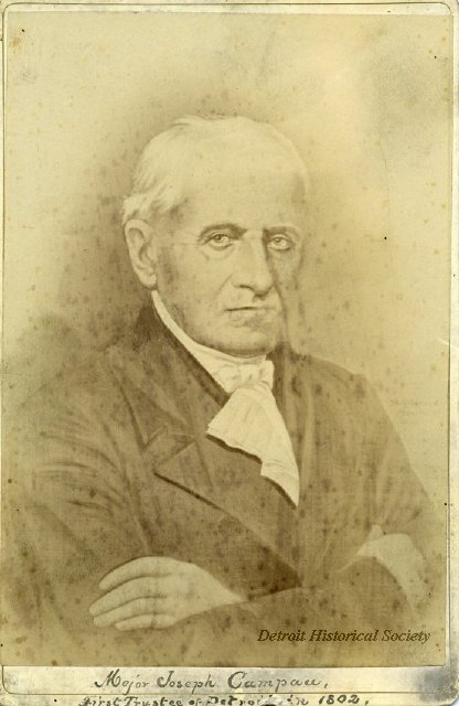 Joseph Campau, born in Detroit on February 20, 1769, was the largest landowner in Detroit in the 1800s. Campau was the grandson of original settler, Jacques Campau, who came from Montreal to Detroit in 1708, seven years after Detroit’s founding.