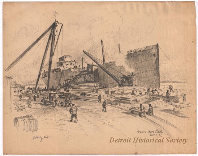 The R.W. England, was the first steamer launched on May 5, 1904. By this time 1,600 men worked for the main engine works in Detroit, and the shipyards in Ecorse and St. Clair. The St. Clair shipyard, opened in 1904, built all of the sections for Michigan Central Railroad’s tunnel installed under the Detroit River between Detroit and Windsor. However that yard had no dry dock, and a proposal made by investors in Ashtabula, Ohio for a shipyard on the south shores of Lake Erie was accepted, closing the St. Clair yard in 1910 and opening the Ashtabula shipyard in 1911.