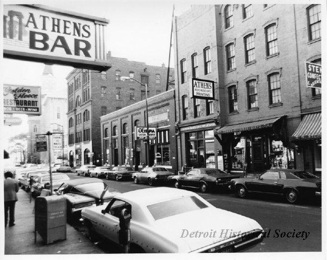 The Greektown Historic District, commonly referred to simply as “Greektown,” is a historic neighborhood, commercial district, and entertainment district on Monroe Avenue between Brush and St. Antoine streets. It is dominated by Greek themed décor and restaurants. Greektown was first settled in the 1830s by German immigrants as a primarily residential neighborhood. In the early 1900s, many of the German residents began to move out of the neighborhood, and Greek residents moved in and established businesses. In the 1920s, the Greek residents, like the German residents before them, began to move out of the area, although their businesses, restaurants, and stores, remained. Through the 1950s, a mélange of immigrants moved into the few residences that remained amidst the businesses.