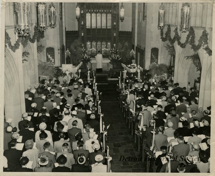 Several skilled artists and craftsmen in metal, stone, wood, painting, tile and stained glass were commissioned. They include Peter Bernasconi of Detroit, who built the altar, and tile work done by Pewabic Pottery. The stained-glass windows were made by Henry Lee Willet of Philadelphia and restored by the original company in 1996-1998. The Opus 808 thirty-two-rank organ was designed and built by Ernest Skinner, regarded as the premier organ builder of his time. In 1991, the organ was fully restored by Skinner scholars.