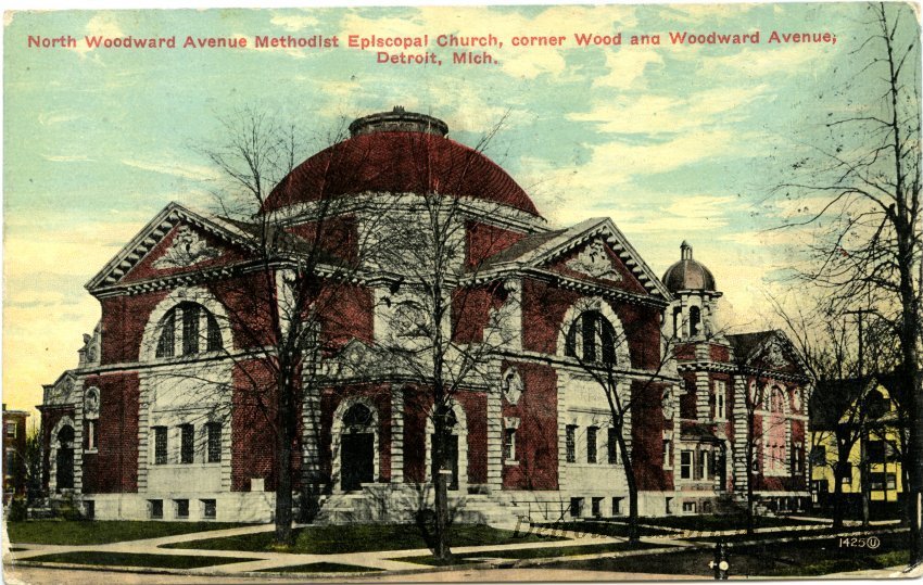 Metropolitan United Methodist Church began as a merger of Woodward Avenue Methodist Episcopal Church and Oakland Avenue Church. A church was built at Woodward Avenue and Melbourne Street in 1903 to house the new congregation. The building burned down in 1916 and the decision was made to rebuild. Sebastian S. Kresge, a member of the congregation, donated land at Woodward and Chandler for a new building. On June 4, 1922, the cornerstone was laid, and the name was changed to Metropolitan Methodist Episcopal Church. Services were held in the completed sanctuary on January 17, 1926.
