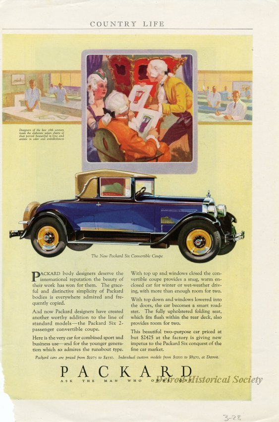 The first Packard was made in 1899 under the New York and Ohio Company, founded by brothers William and James Packard in Warren, Ohio. Detroiter Henry Bourne Joy bought a Packard while in New York City and was so impressed by it that, after visiting the Packard brothers in Ohio, he convinced friends Truman Newberry, Russell Alger, Jr., Phillip McMillan, Dexter Ferry, Jr., Joseph Boyer and Charles DuCharme, all from some of the city’s wealthiest families, to invest in the company, now called the Ohio Automobile Company.