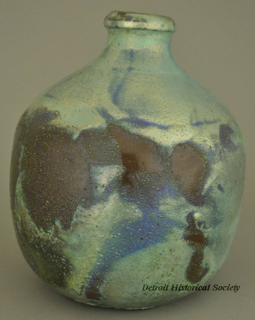 Through Caulkins’ “Revelation Kiln” and Stratton’s artistic direction, Pewabic Pottery produced nationally renowned vessels, tiles, and architectural ornamentation for public and private installations featuring their unique iridescent glazes. When the Great Depression reduced the demand for costlier wares, ceramic jewelry was produced by Pewabic. Works fabricated by Pewabic Pottery can be seen throughout the United States in such places as the National Shrine of the Immaculate Conception in Washington, D.C., the Nebraska State Capitol, the Shedd Aquarium in Chicago, and the Herald Square installation commissioned by the New York Metro Transit Authority.