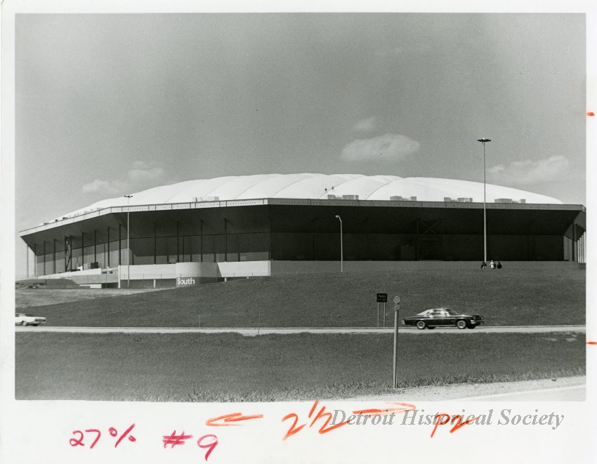 Designed by the architectural firm of O'Dell, Hewlett & Luckenbach, the Silverdome opened on August 23, 1975, originally called the Pontiac Metropolitan Stadium. It was notable for its 430,000 square foot Teflon-coated, fiberglass fabric roof held aloft by air pressure, the first major athletic facility to use the unique architectural feature, which was not immune to weather problems over the years. The sun caused a silver-like reflection off the white roof, hence the name Silverdome, which became official in 1977. Located north of Pontiac near I-75, it sat on 132 acres and cost $55.7 million to construct.