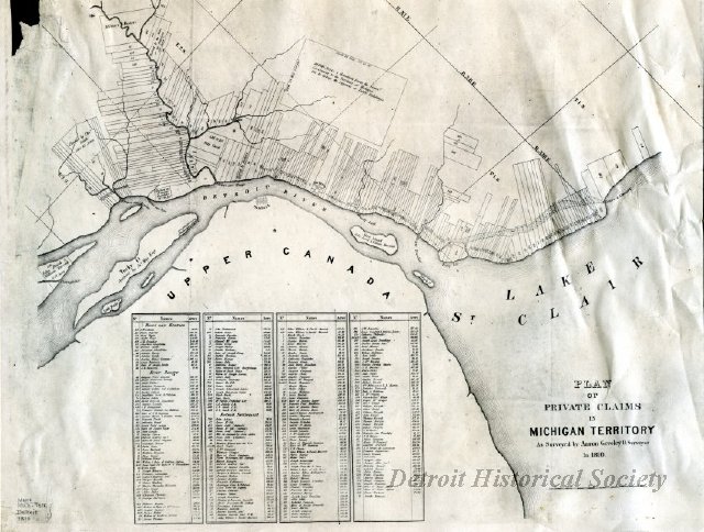 French explorer Antoine Laumet de La Mothe Cadillac sailed up the Detroit River in 1701 and established Fort Pontchartrain and was given authority to appropriate and grant land to settlers. Beginning in 1707, he awarded farms that extended a mile and a half inland on both sides of the Detroit River, giving each farm a narrow river frontage.