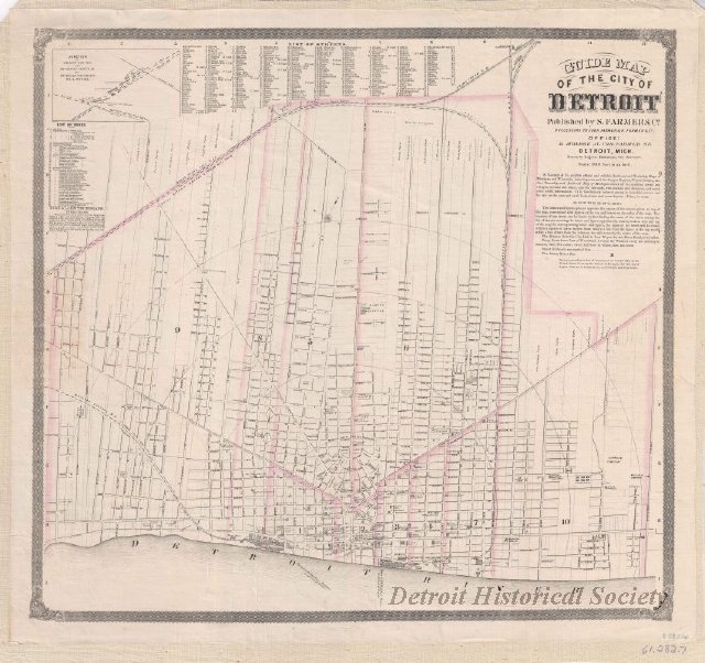 In Detroit, farms along the Detroit River were owned by families with names that are familiar today, St. Aubin, and Beaubien, for example. Many streets running from the Detroit River follow ribbon farm boundaries and carry the names of the farm owners.