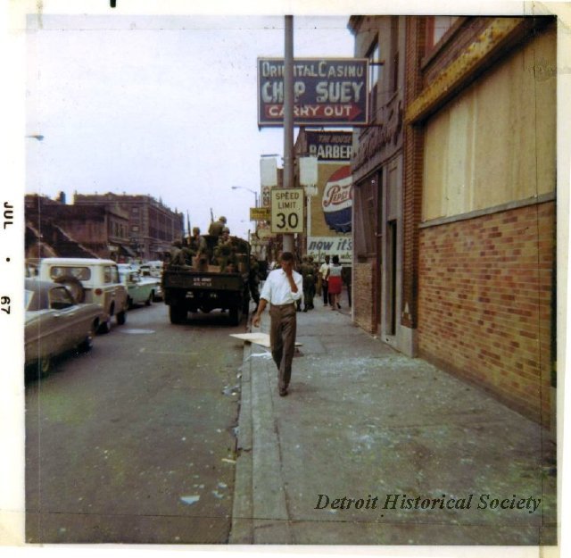 At 3:15am on July 23rd, the vice squad of the Detroit Police Department executed a raid on a blind pig at 12th Street and Clairmount. Despite the late hour, the avenue was full of people attempting to stay cool amidst a stifling heat wave. As the police escorted party goers to the precinct for booking, a crowd gathered and the situation grew increasing antagonistic. When the final arrestees were loaded into police vans, a brick shattered the rear window of a police cruiser, prompting a rash of break-ins, burglaries, and eventually arson.