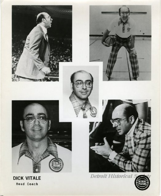 He was tapped as the new coach of the Detroit Pistons in 1978 by owner William Davidson. The team promoted his hiring with a splashy press conference at the Pontiac Silverdome and a “reVITALEized” promotional campaign. Despite record-setting crowds, the Pistons fired Vitale on November 8, 1979 as the stress of the NBA and a losing season eventually got the best of him.