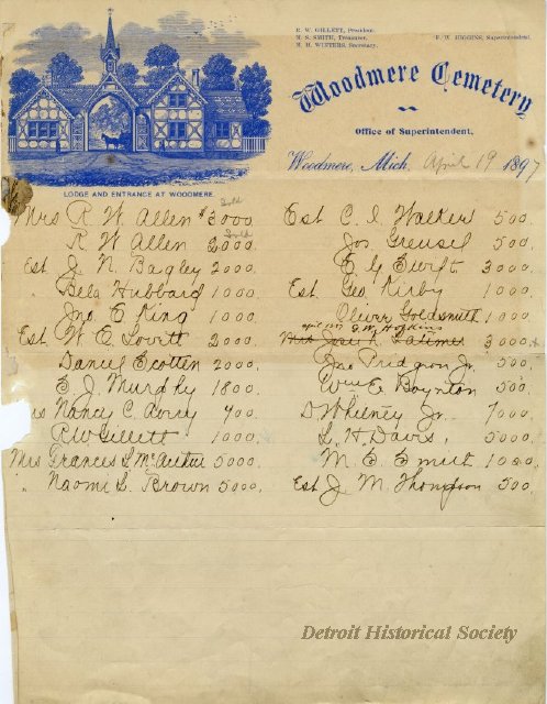 David Whitney, Jr. left a lasting legacy in the city of Detroit, through his participation as stockholder and board member of various banking and other companies, through his acquisition of real estate, and by the two significant buildings that carry his name. He is remembered as one of Detroit and Michigan’s wealthiest citizens.