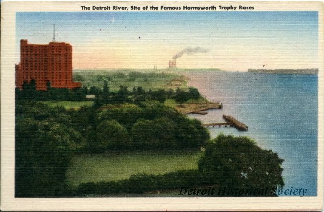 Whittier Tower refers to the renovated high rise residential complex and former hotel, also known as “Whittier Apartments,” or simply, “The Whittier.” It is located at 415 Burns Drive in Detroit, on the Detroit River. At the time, the area between E. Jefferson Avenue and the Detroit River was the site of mostly large expensive homes. When the developer proposed the plan for high-rise buildings, the residents of the area went to court citing zoning regulations to attempt to stop construction. Instead, the developer extended Burns Drive to the river and located The Whittier there. The court agreed that the ordinances did not apply to that location and so construction proceeded.