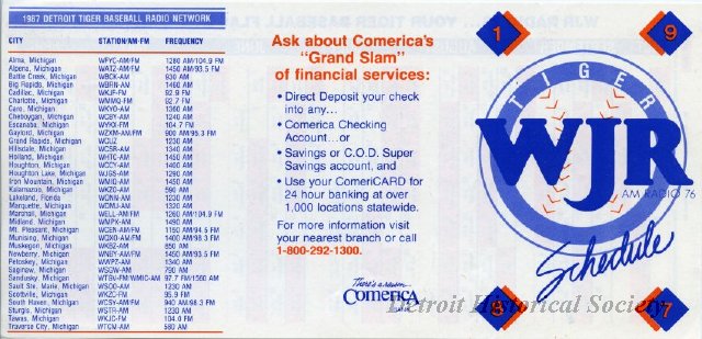 Tigers Radio Network schedule featuring WJR logo, 1987 - 2014.003.065
